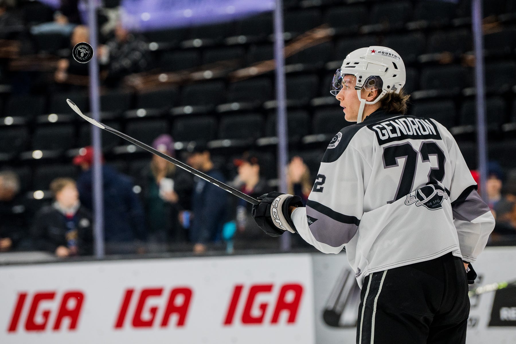 GATINEAU OLYMPIQUES (QMJHL): RW ALEXIS GENDRON (PHI 7th/2022) scored twice and added an assist, and RHD TRISTAN LUNEAU (ANA 2nd/2022) added a goal and three assists, as the Gatineau Olympiques won their 12th consecutive game after blitzing the Chicoutimi Sagueneens 7-3 on Friday night. Gendron (pictured), who scored five goals in an 8-4 clubbing of Cape Breton on Feb. 18, has tallied 9 goals in his last 4 games, and 18 have come in his last 15 outings. For the season, the 5-foot-10, 180-pound winger has 41 goals to rank fourth in the QMJHL. Luneau now has 3 goals and 8 assists during a five-game point streak to take over the QMJHL defense scoring lead with 63 points in 53 games (16 goals, 47 assists). C RILEY KIDNEY (MTL 2nd/2022) contributed a goal and an assist to extend his point streak to 16 games and give him 43 points in 17 contests since being traded to Gatineau from the Acadie-Bathurst Titan. The win allowed Gatineau to keep pace with Sherbrooke, which leads the Western Conference by a point over the Olympiques.